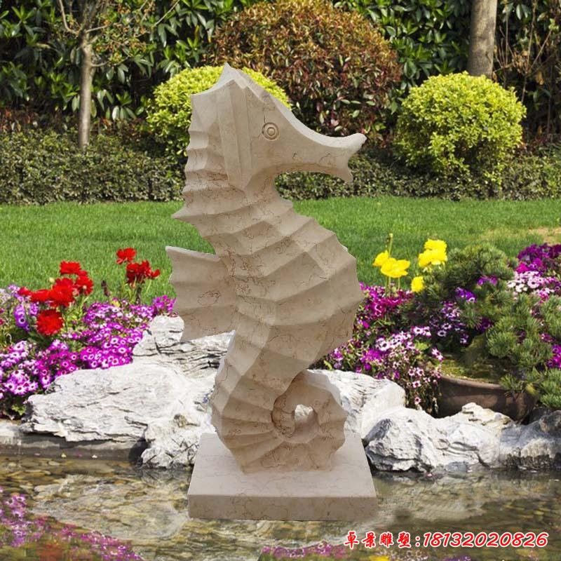 海馬是一種小型海洋動(dòng)物,身長(zhǎng)5-30厘米。因頭部彎曲與體近直角而得名,頭呈馬頭狀而與身體形成一個(gè)角,吻呈長(zhǎng)管狀,口小,背鰭一個(gè),均為鰭條組成。眼可以各自獨(dú)立活動(dòng)。這種奇特的造型而常被用來(lái)做各種工藝品擺件,這種海馬造型的噴水動(dòng)物雕塑,??梢栽趶V場(chǎng)噴泉水景中見到。